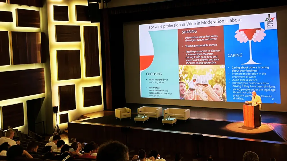 Consorzio DOC Delle Venezie organised its third annual conference in October 2024 around the theme of Pinot Grigio Delle Venezie, including materials and information about Wine in Moderation. The aim of the conference was to present and discuss different aspects related to Pinot Grigio DOC Delle Venezie, its specificities, peculiarities, and the commercial and regulatory challenges and opportunities the product faces today. A space was allocated to Wine in Moderation for the duration of the conference, with flyers, postcards and gadgets, available to the almost 100 attendees, with the aim to encourage them to learn more about the programme.
